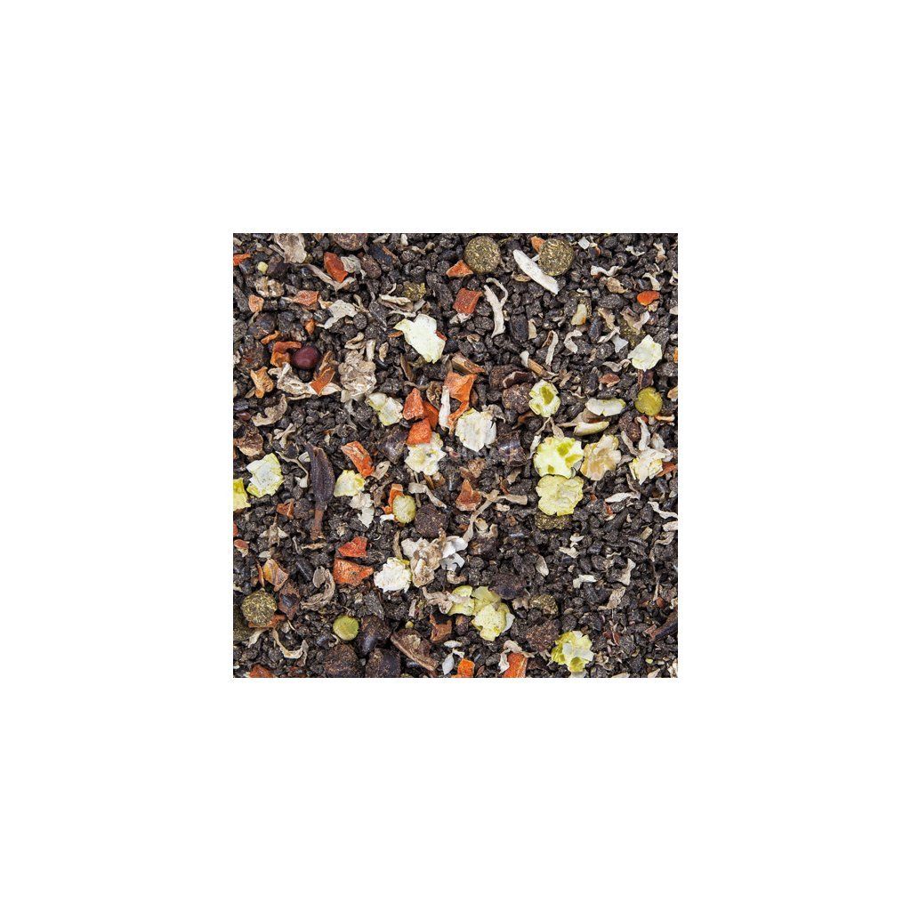 - Zloženie: Extrahované slnečnicové semená a šupky, Jablčné výlisky, Čakankové rezky, Múčka z lucerky, Hrachové a mrkvové vločky, Ľanové semeno, Slnečnicový olej, Ľanový olej, Pivovarské kvasnice, Oregáno, Uhličitan vápenatý, Harmanček, Oxid horečnatý.