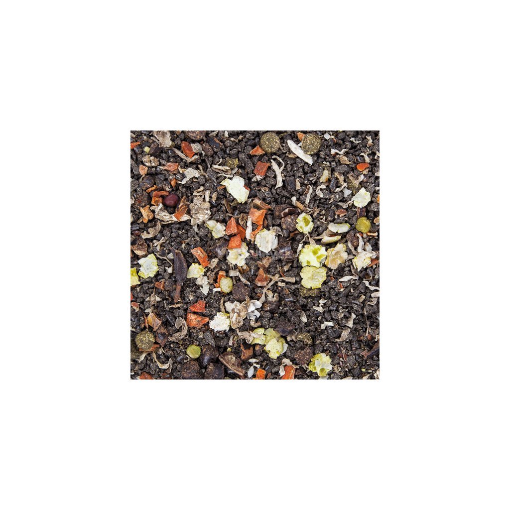 - Zloženie: Extrahované slnečnicové semená a šupky, Jablčné výlisky, Čakankové rezky, Múčka z lucerky, Hrachové a mrkvové vločky, Ľanové semeno, Slnečnicový olej, Ľanový olej, Pivovarské kvasnice, Oregáno, Uhličitan vápenatý, Harmanček, Oxid horečnatý.